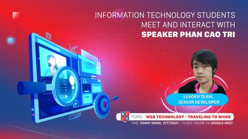 INFORMATION TECHNOLOGY STUDENTS MEET AND INTERACT WITH SPEAKER PHAN CAO TRI – LEADER TEAM, SENIOR DEVELOPER WITH THE TOPIC: “WEB TECHNOLOGY – TRAVELING TO WORK”